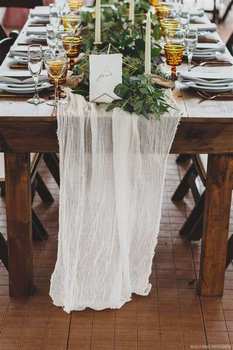 Camino de mesa de gasa con cinta, elegante, para fiestas